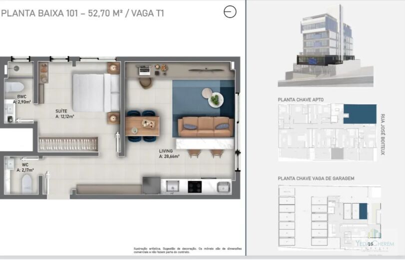 As imagens são ilustrações artísticas e sugestão de decoração. Os móveis são de dimensões comerciais, e não fazem parte do contrato. Os revestimentos, bancadas, louças e metais são conforme Memorial Descritivo do Empreendimento