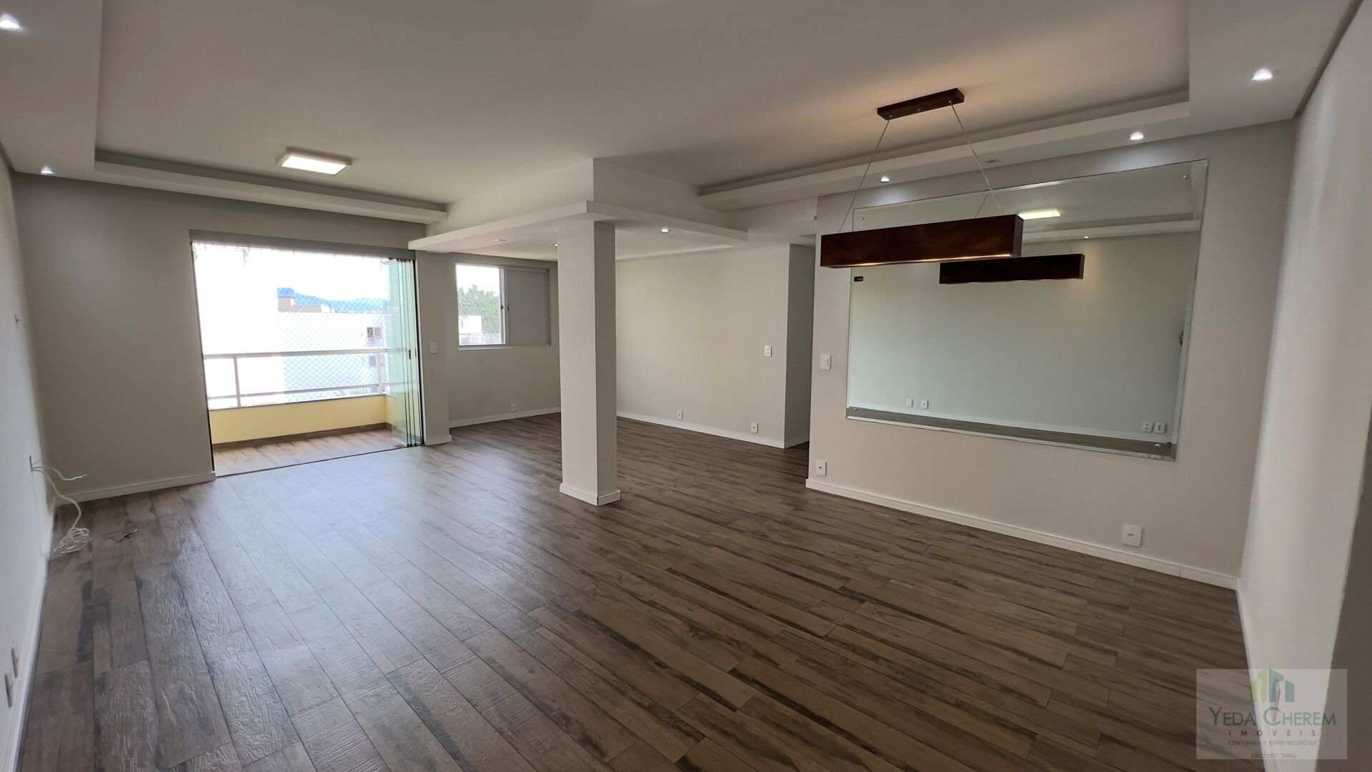 - Sala: Ampla, para 3 ambientes, com sacada