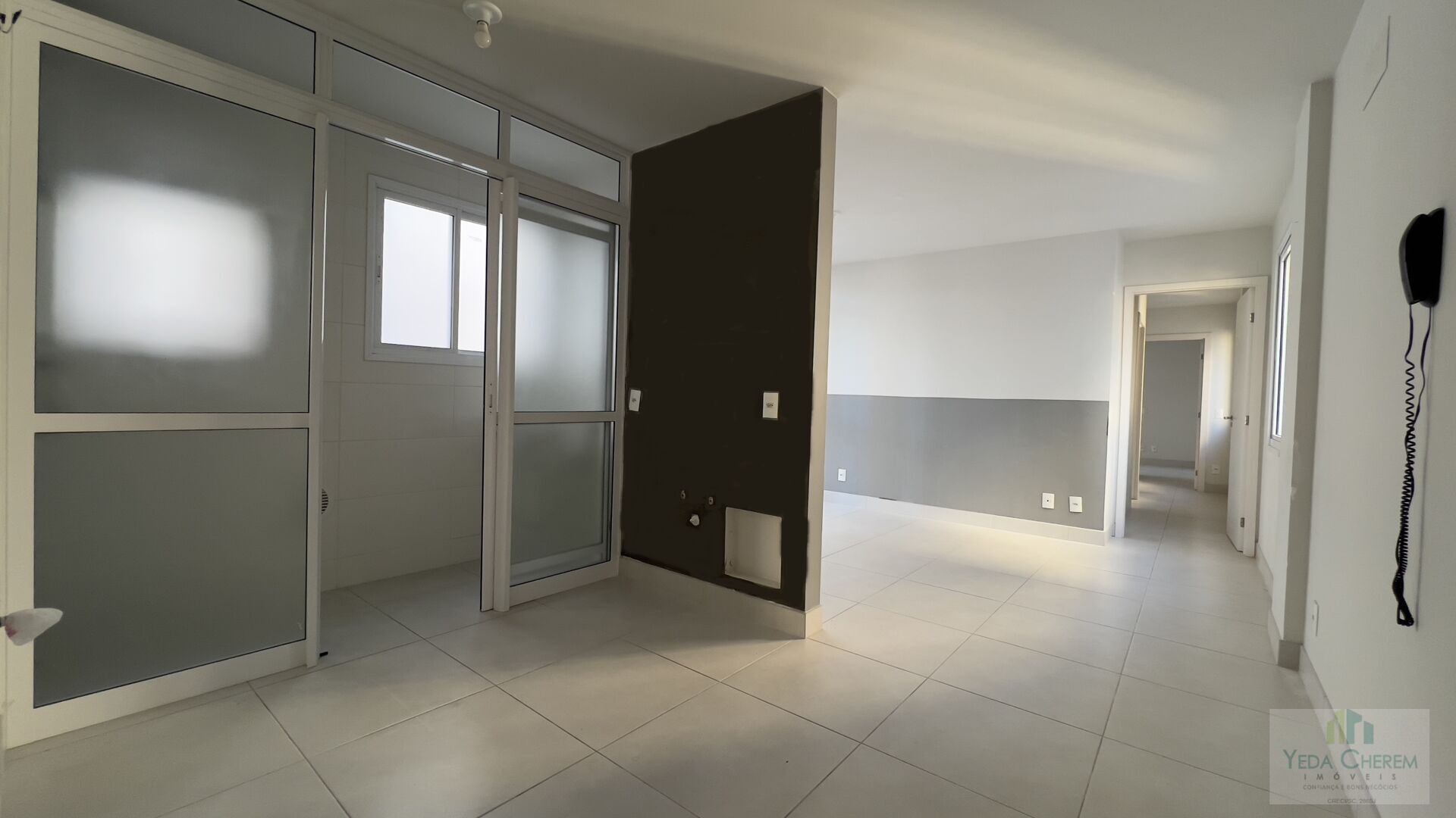Apartamento com sala e cozinha conjugadas, área de serviço com aquecimento de água a gás, uma suíte com ar split mais um dormitório e banheiro social. Piso em porcelanato. Duas vagas de garagem lado a lado, cobertas.