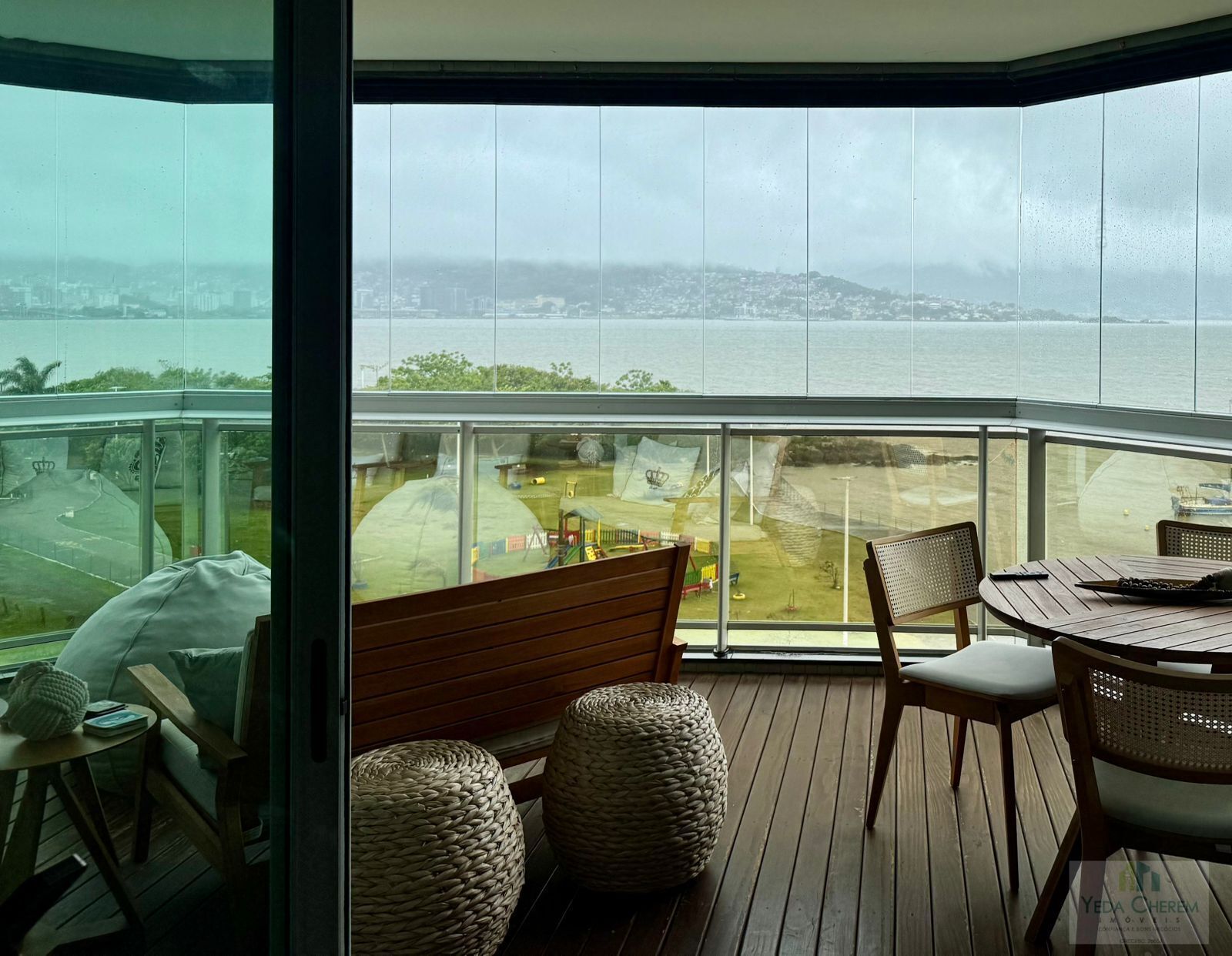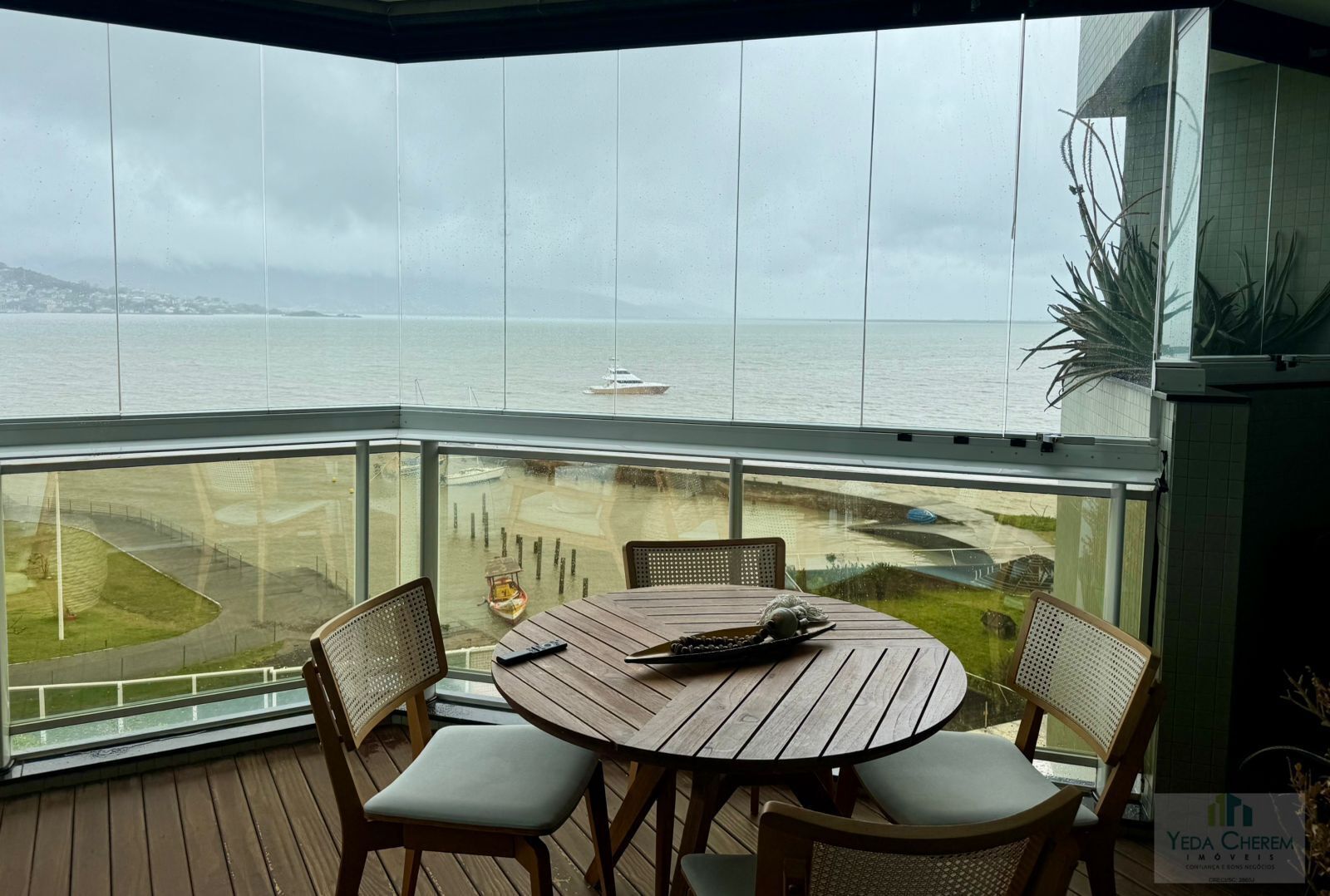 Com 427,71 m² de área total, sendo 316,63 m² privativos, o apartamento foi projetado para quem valoriza amplitude e sofisticação. A sala de estar, espaçosa e elegante, integra-se a uma sacada panorâmica que oferece uma vista permanente e inesquecível para o mar da Baía Sul, criando um ambiente perfeito para contemplar o pôr do sol e receber amigos.