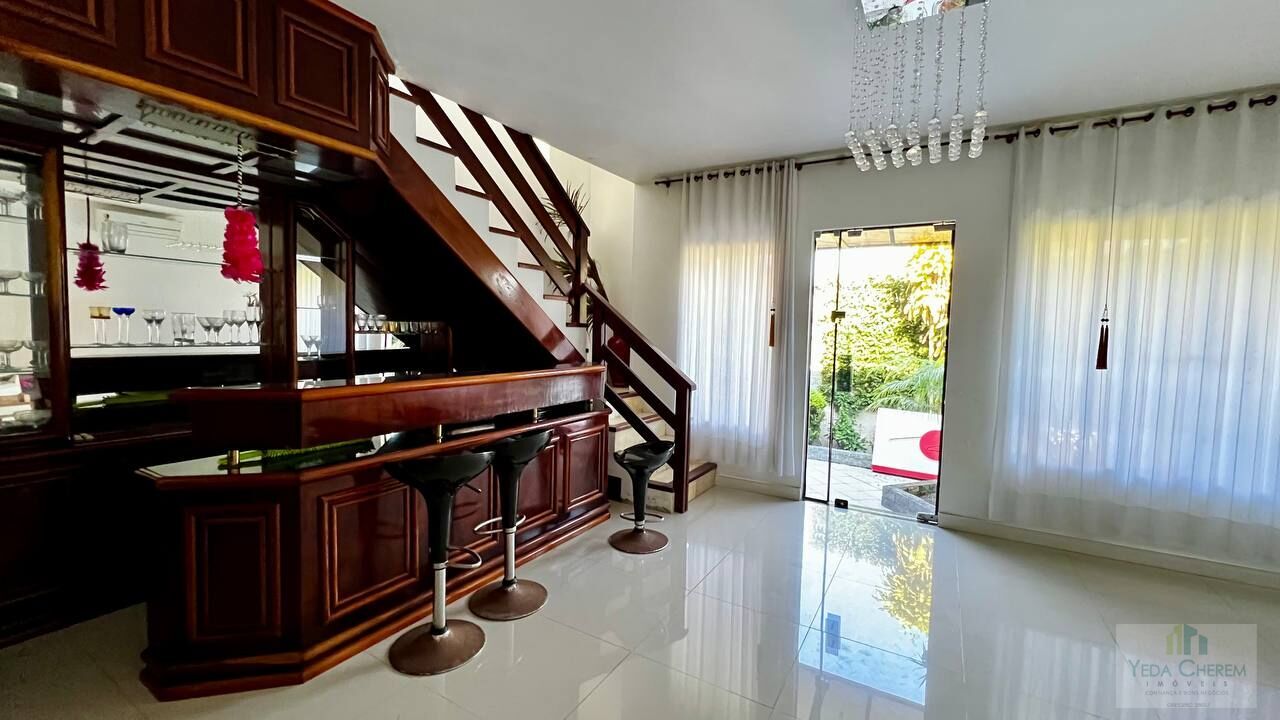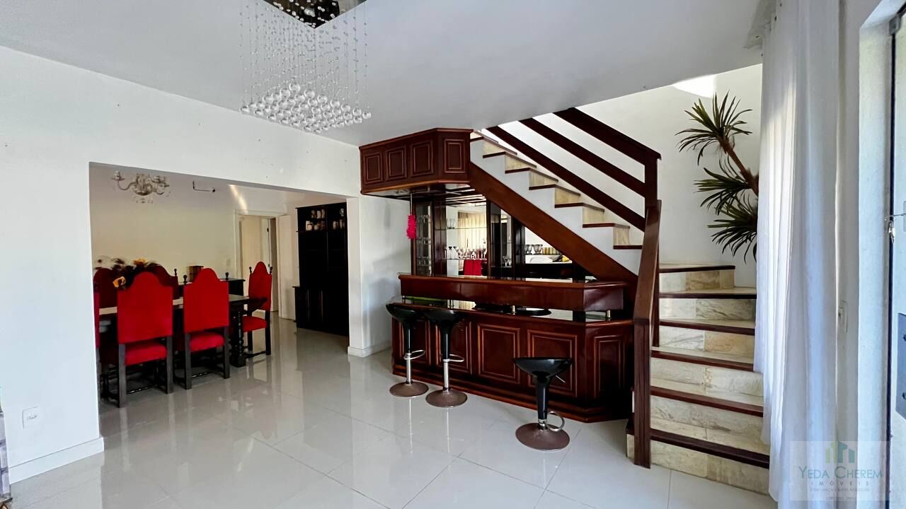 No térreo: três quartos , sendo uma suíte com armários embutidos, banheira de hidromassagem e espelhos que refletem a luz natural; salas de estar, TV e jantar que se conectam harmoniosamente, criando espaços perfeitos para receber amigos e familiares; uma cozinha com armários e ar-condicionado. E que tal um bar para dar aquele toque especial às suas noites?