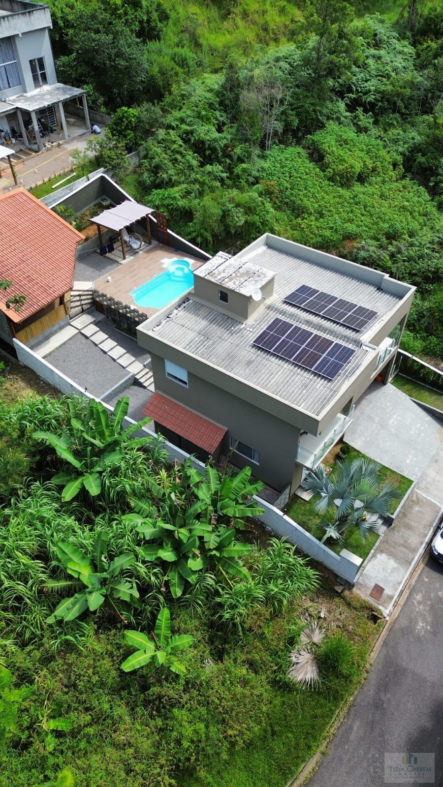 A casa conta com energia solar cobrindo até 100% de seu consumo.